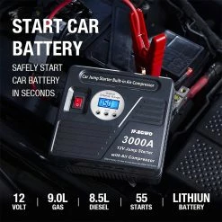 JF.EGWO 3000Amp Car Jump Starter With Air Compressor, 24000mAh 12V Auto Battery Booster, 150PSI Tire Inflator – UK Plug