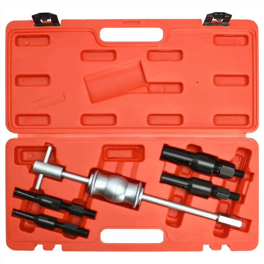 This blind inner bearing puller set has a split collet with an internal puller which is suitable for extracting bearings from blind housings. This set consists of a puller set of internal bearing pullers from 10 to 32 mm, a slide hammer, 4 gear pullers and a handy carrying case for transportation a safe storing.