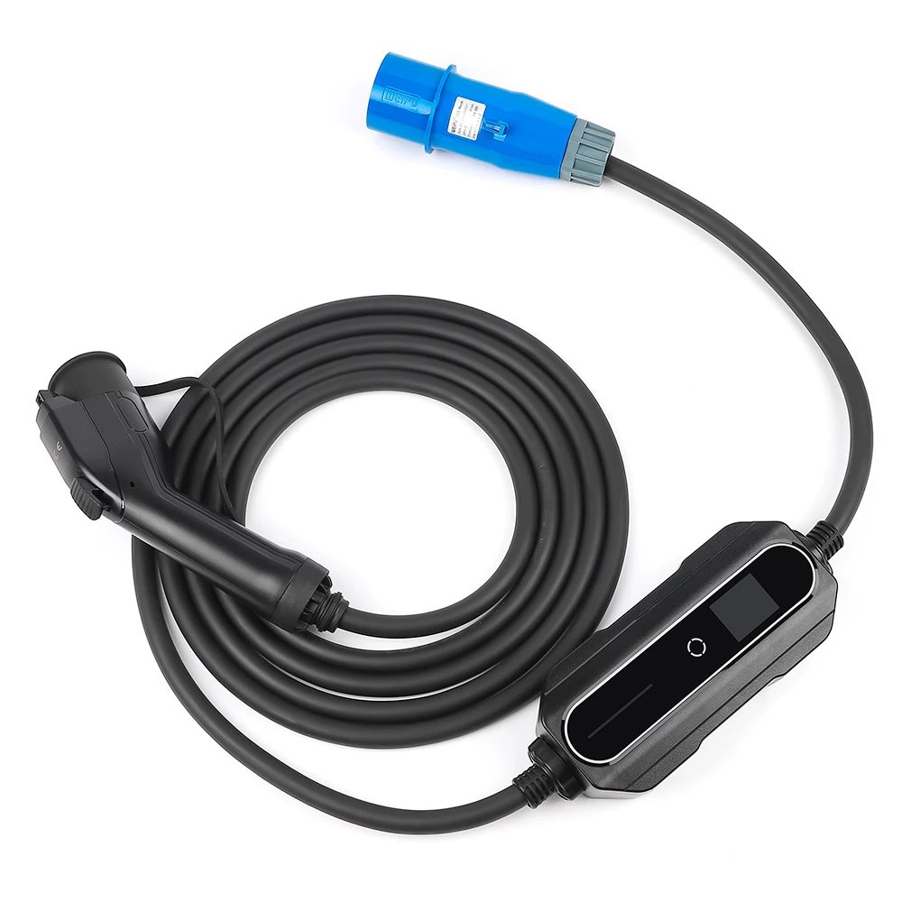 The charge cable measures 5m from plug to plug. It is a compact portable EV charging station that is an ideal solution for low-cost charging in your garage or to keep in the trunk of your EV for charging at work or on trips.