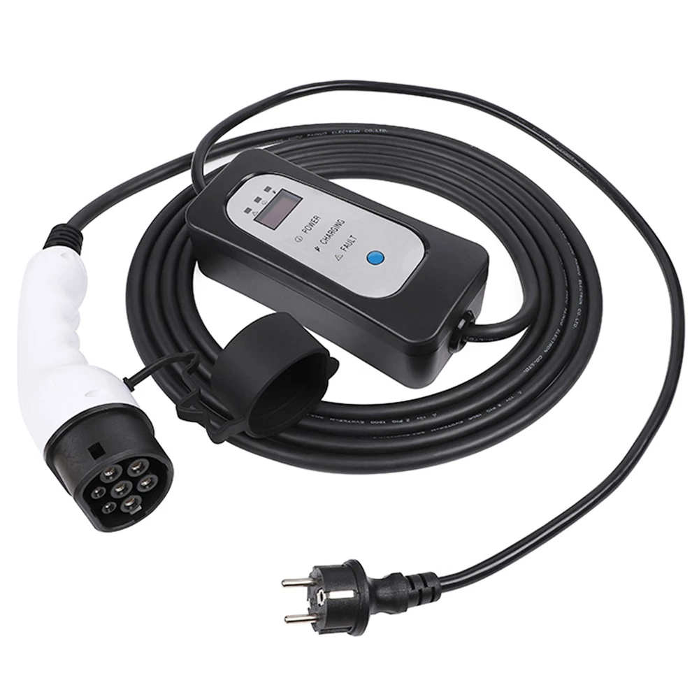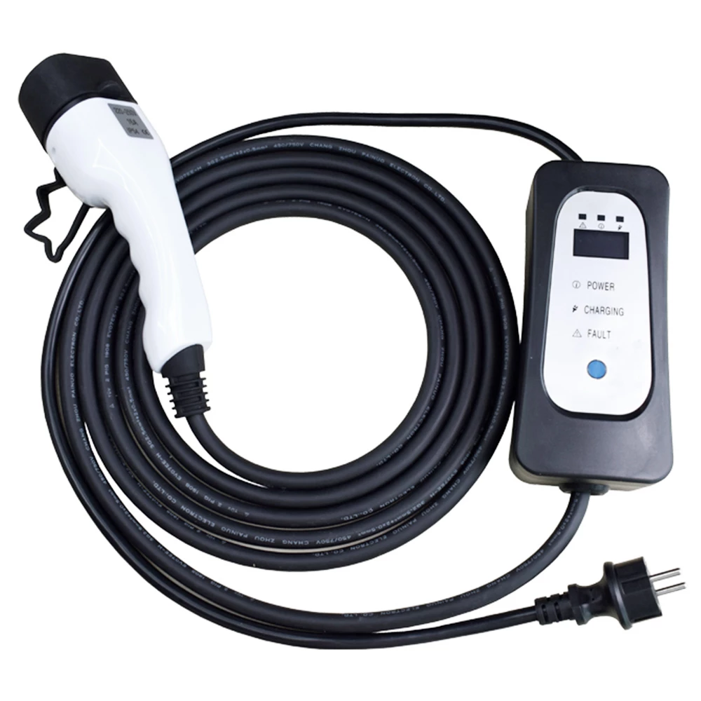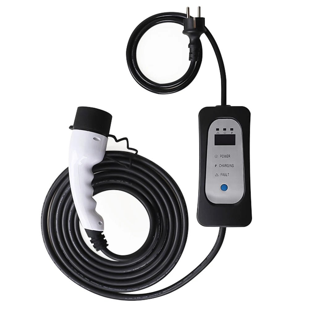 The charge cable measures 5m from plug to plug. It is a compact portable EV charging station that is an ideal solution for low-cost charging in your garage or to keep in the trunk of your EV for charging at work or on trips.