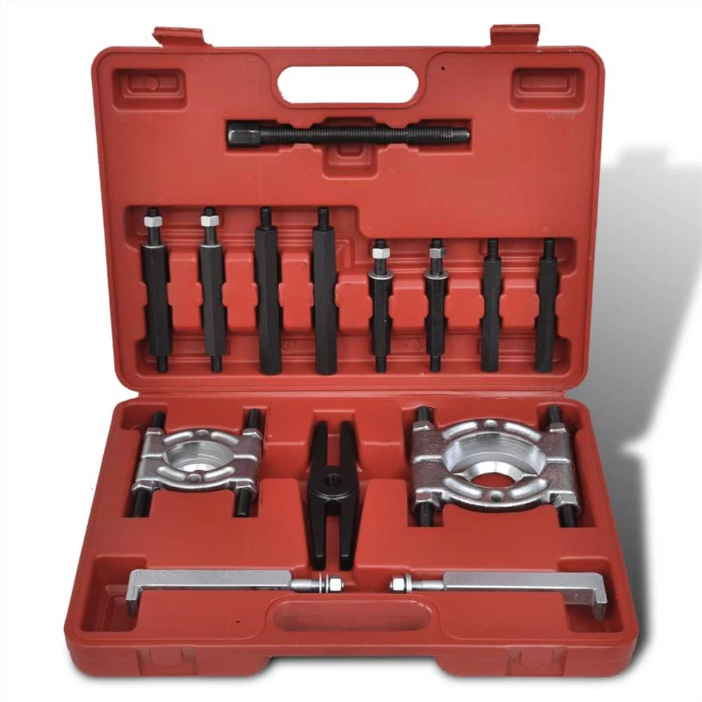 This bearing puller set can remove gears, pulleys and steering wheels efficiently. It is suitable for splitting bearings on cars and commercial vehicles. Delivery includes two bearing splitters with 2″ and 3″ jaws, one H-type beam, one lead screw, two 6″ yoke adaptors, two 5″ extension screws and two 4” screws with male and female threads, together with two 5″ extension screws and two 4″ extension screws with male threads. Crafted by drop forged, heavy duty steel, this bearing puller set is endowed with maximum durability for years of use. All tools are well stored in a sturdy case for better storage.