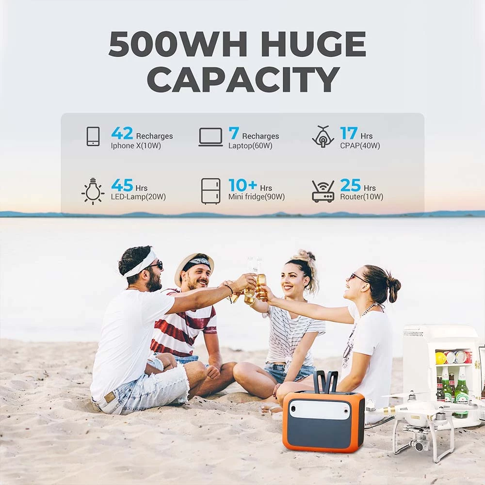BLUETTI AC50S lithium battery power station features 500Wh (45Ah, 11.1V), 300W power, and 220-240V AC outlets (pure sine wave), which can run most of your essential outdoor appliances and electronics such as mobile phones, cameras, Bluetooth speakers, mini freezers, radios, projectors and more.