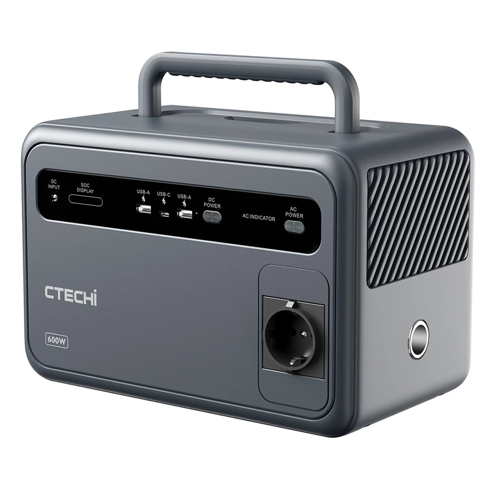 CTECHi GT600 integrates AC, DC, USB-C, and USB-A outputs, and the rated AC output is 600W power, which can meet the needs of customers in various outdoor scenarios.