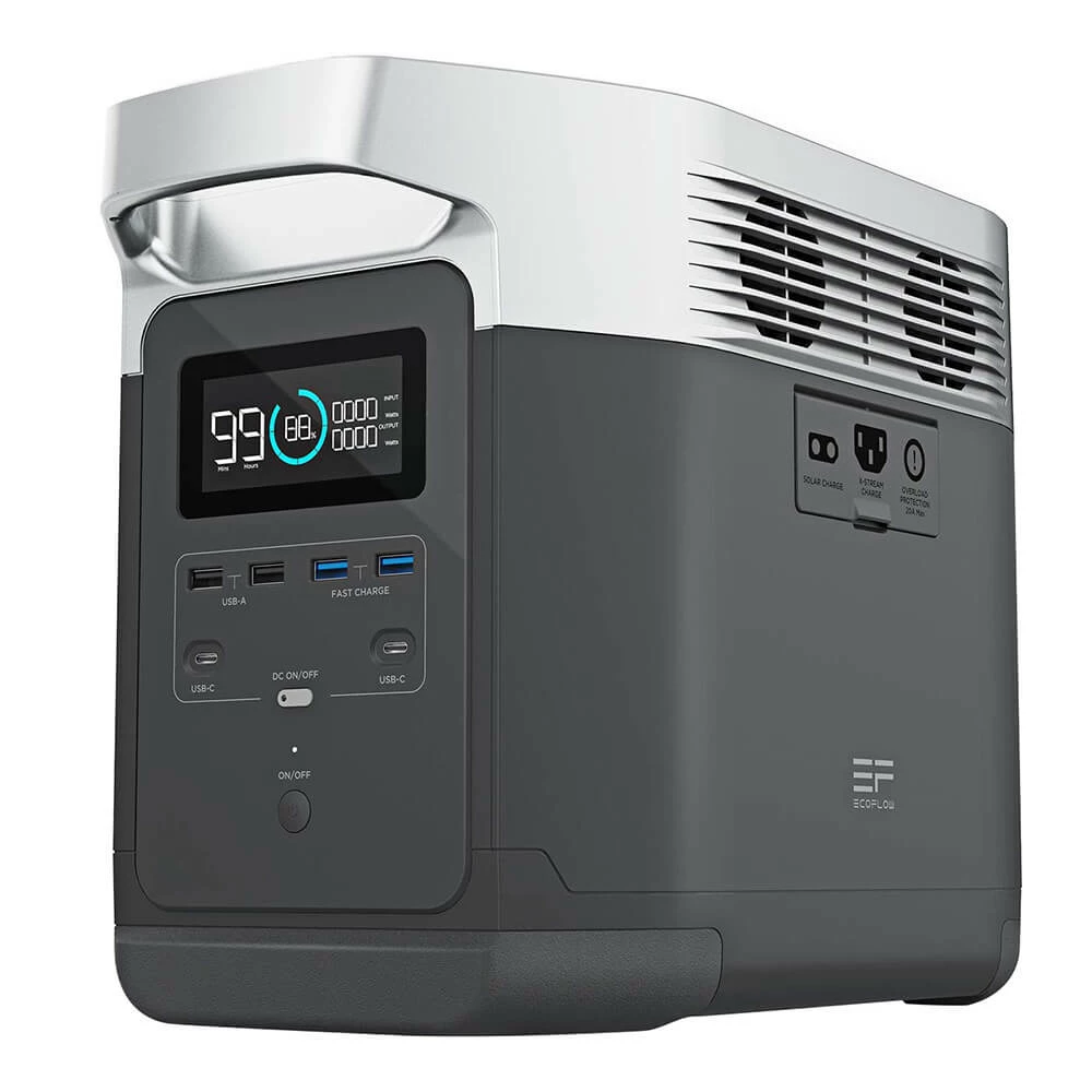 Equipped with large inverter load, which can power most home appliances and heavy-duty DIY tools under 1800W (3300W Surge, PURE SINE WAVE): like TV, Fridge, Coffee Machine, Microwave Oven, CPAP, Drill and Saw. With 1260Wh capacity, EFDELTA can be truly a backup generator that keeps the lights, fridges running for hours.