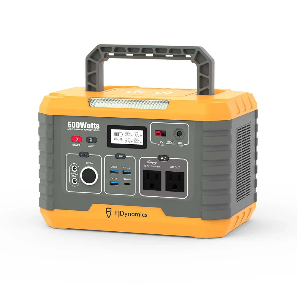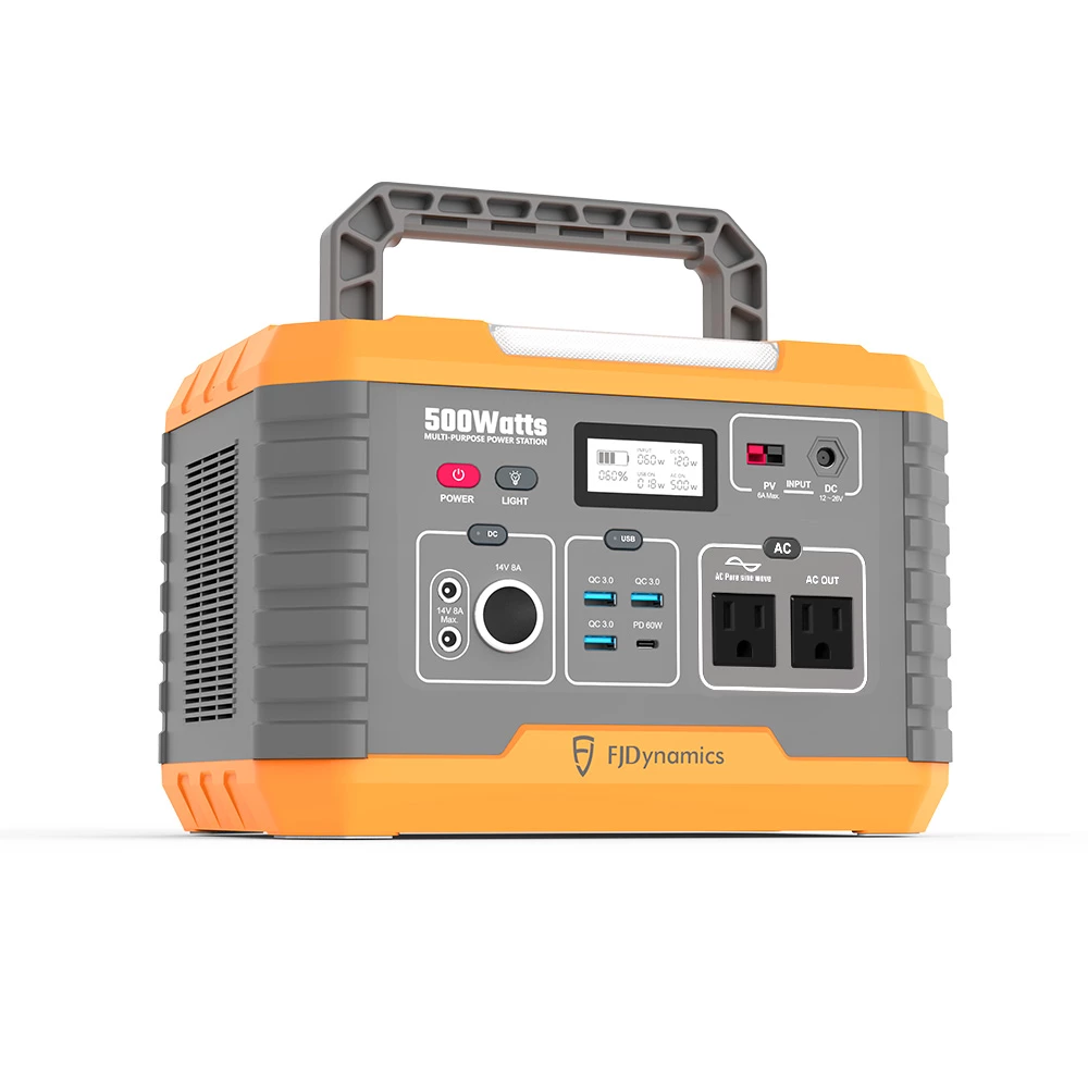 The FJD 500W power station provides 500W rated power output with different kinds of ports. It comes with 2 x AC outlets, 1 x Type-C USB port, 3 x USB A ports with fast charging, 2 x DC ports, and 1 x cigarette lighter car port. And it offers cleaner, quieter, and more reliable power for 99% of common household appliances and electronic devices.