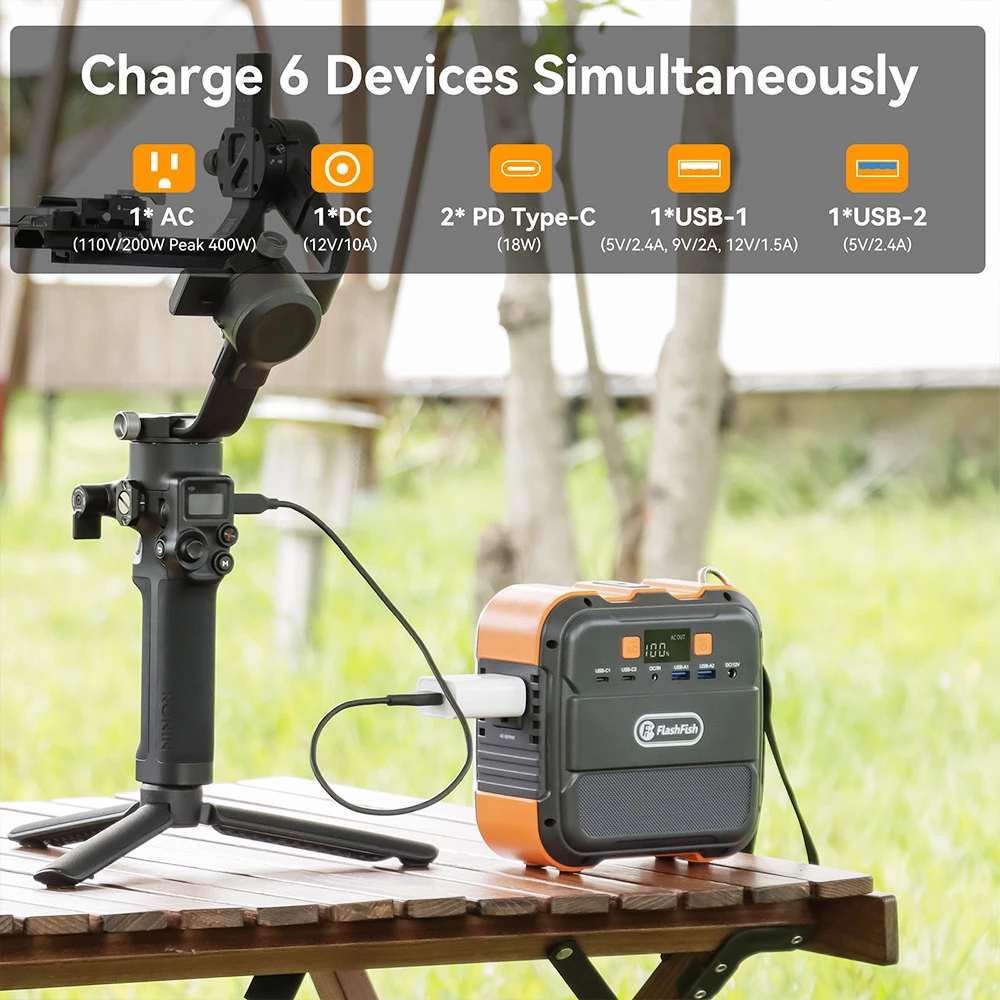 With small size (6.2 x 6.2 x 3.5in) and lightweight (2.65lbs), Flashfish A101 power station is the lightest portable power Station under 100Wh. It also equipped with a convenient hanging rope, makes it easy to hang on your backpack, or carry around for outdoor adventures such as tent camping, road trip, backyard camping, etc.