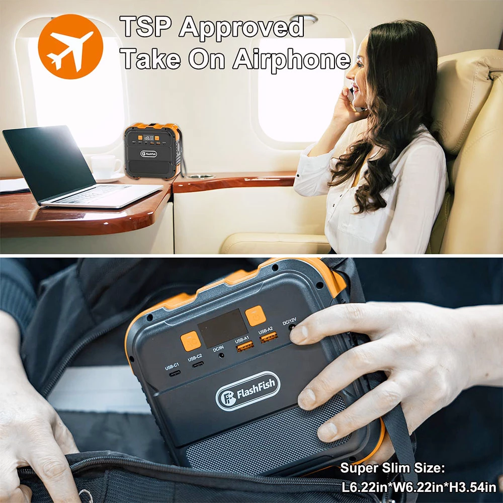 With small size (6.2 x 6.2 x 3.5in) and lightweight (2.65lbs), Flashfish A101 power station is the lightest portable power station under 100Wh. It is also equipped with a convenient hanging rope, which makes it easy to hang on your backpack or carry around for outdoor adventures such as tent camping, road trip, backyard camping, etc.