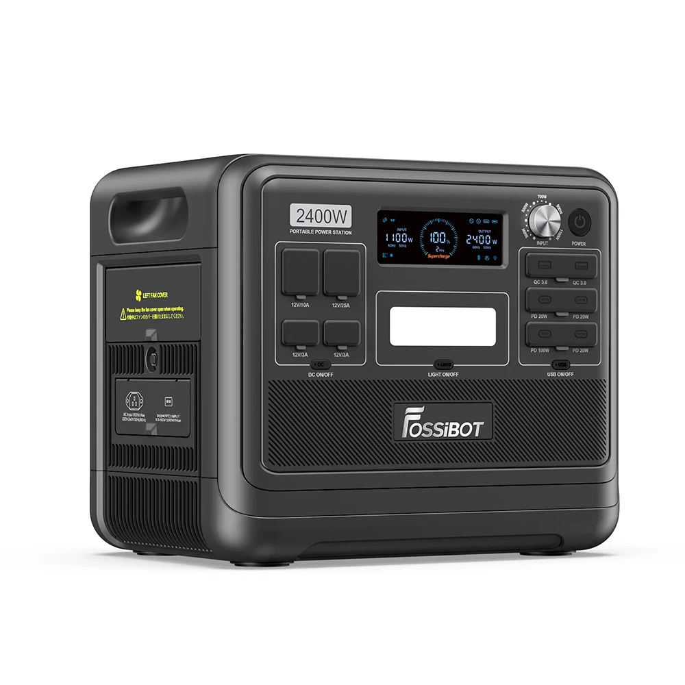 F2400 solar power station, with 300W, 500W, 700W, 900W and 1100W input power protection power supply, the charging speed is completely controlled freely, the adjustment knob can keep the input voltage constant, greatly extend the service life of FOSSiBOT F2400, protect your equipment.