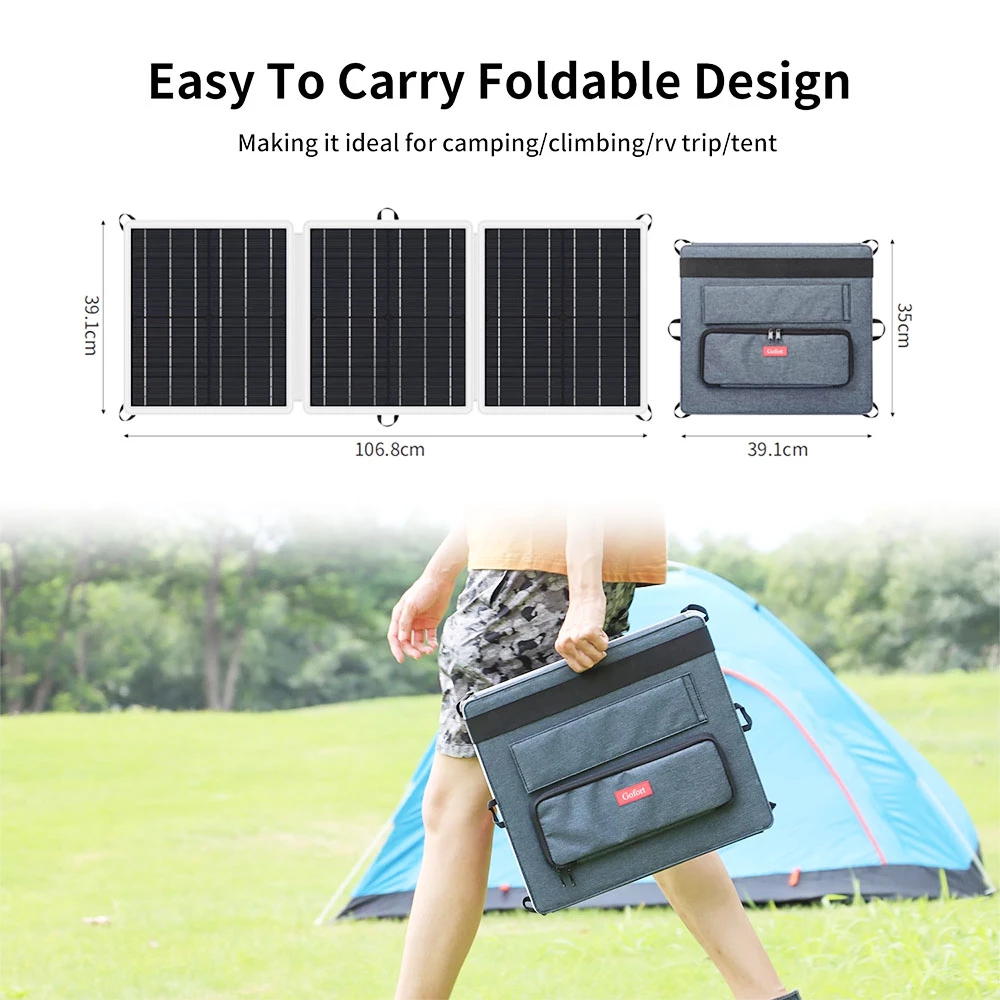 This solar panel is designed for portability. The folded size is 15.4*13.78 inches, which makes the solar charger look like a portable briefcase, weighing only 4.21lbs. Convenient to carry it wherever you go. Ideal for outdoor activities such as camping, climbing, hiking, road trip, picnic.