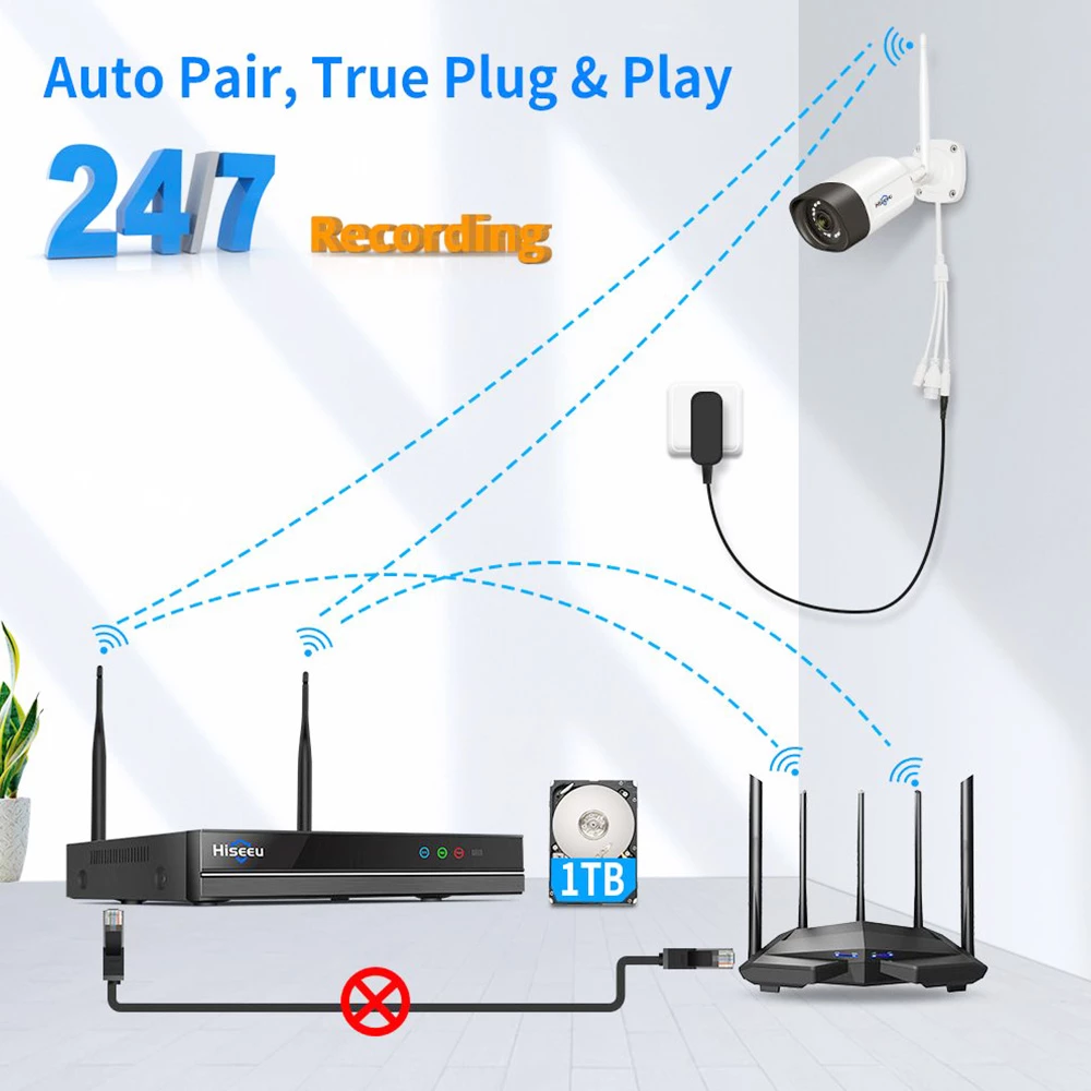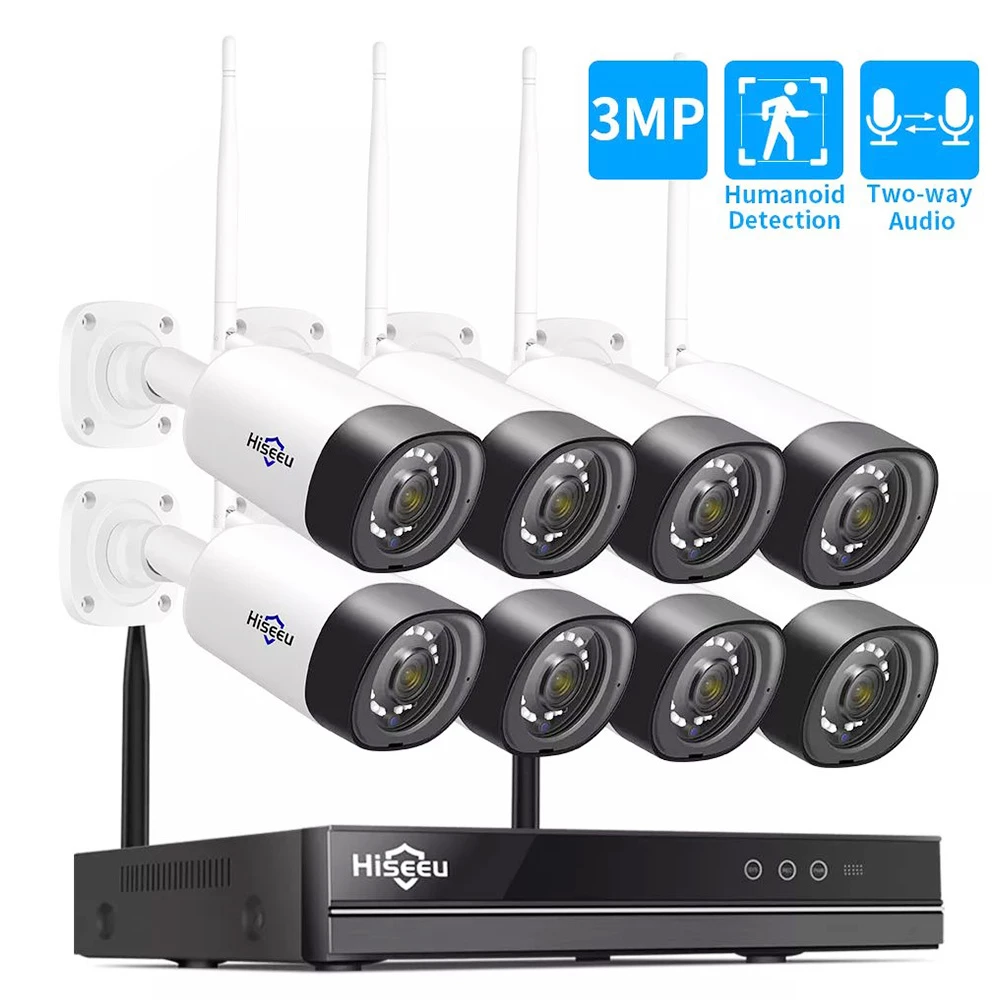 Exclusive 8 Channel NVR Recorder paired with 4 Weatherproof IP66 3MP bullet cameras with 100ft IR-CUT night vision. You can add 4 more 3MP Hiseeu IP cameras to expand your CCTV system.