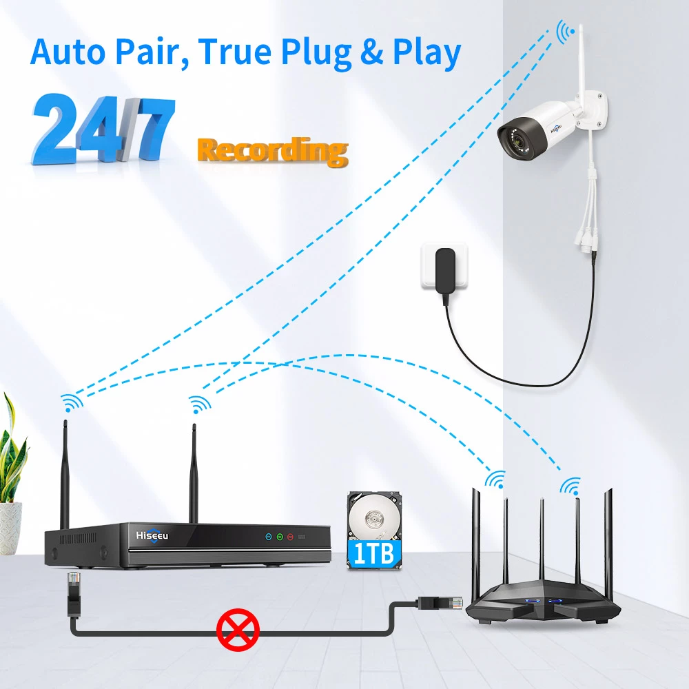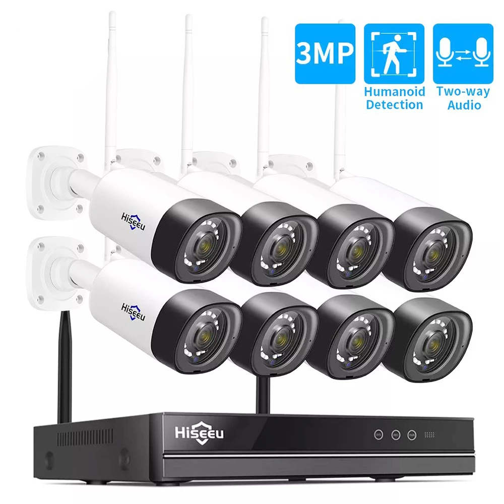 Exclusive 8 Channel NVR Recorder paired with 4 Weatherproof IP66 3MP bullet cameras with 100ft IR-CUT night vision. You can add 4 more 3MP Hiseeu IP cameras to expand your CCTV system.