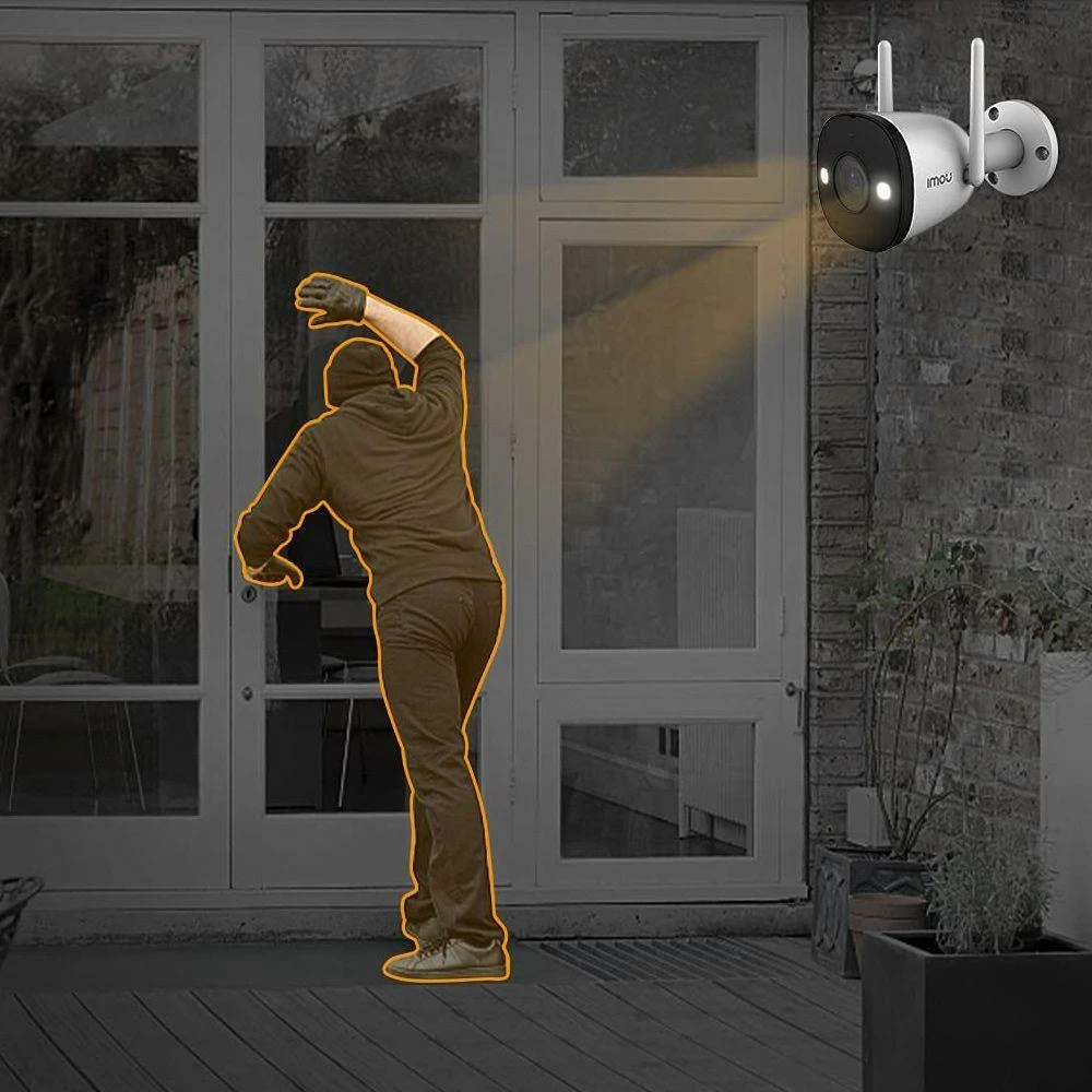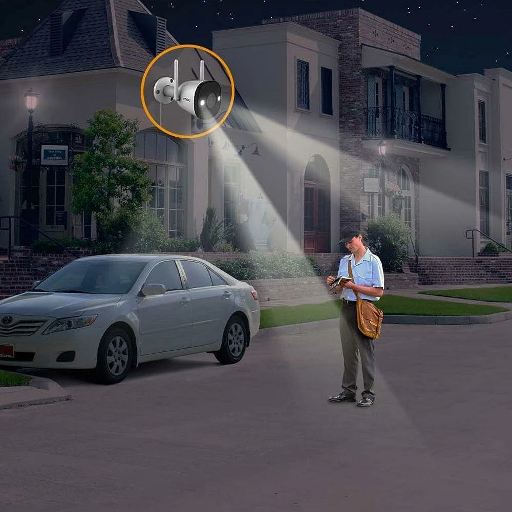 When the camera detects intrusion, with built-in spotlights, Bullet 2E 4MP actively keeps unwelcome visitors away from what you care before you notice them.