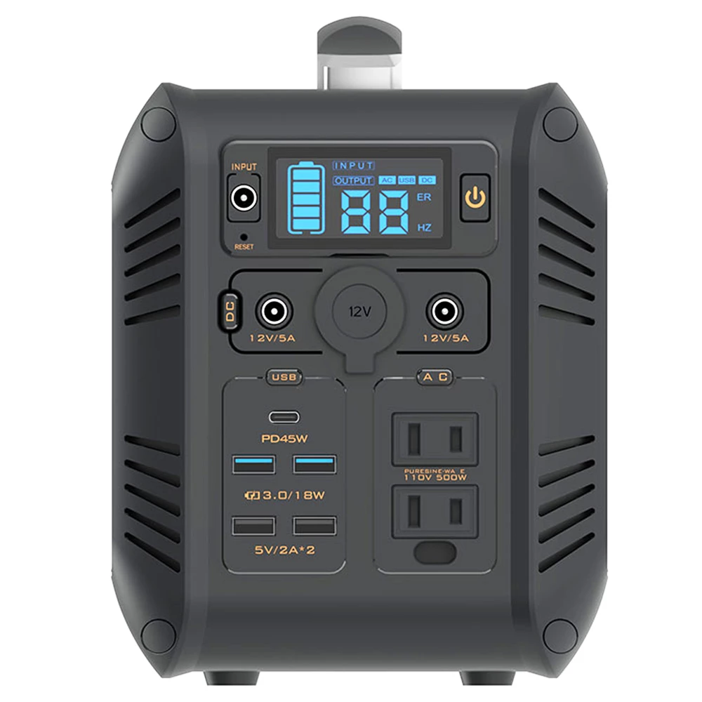 Features with 2*110V(500W)AC output /3*DC/4*USB outputs, power your smartphone, tablet, laptop, in-car appliances, easy operation.