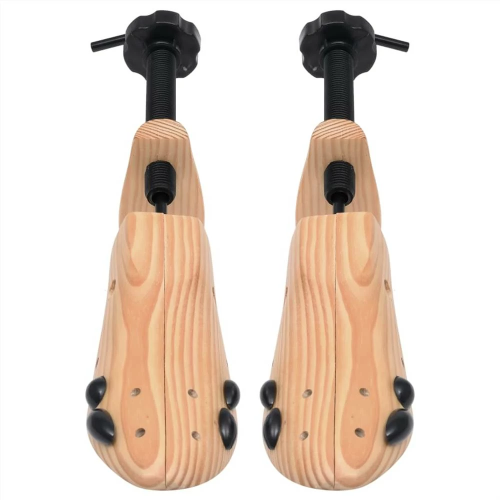 Maintain your shoes perfectly with these pairs of wooden shoe trees. They can stop your shoes from curling and creasing when not worn. These pairs of shoe stretchers are made of solid pine wood that can absorb moisture and eliminate unpleasant smells. You can rotate the knob and L-shaped hook to adjust length and width. Additionally, the holes in the shoe shapers and the included bunion plugs are for pressure point relief.